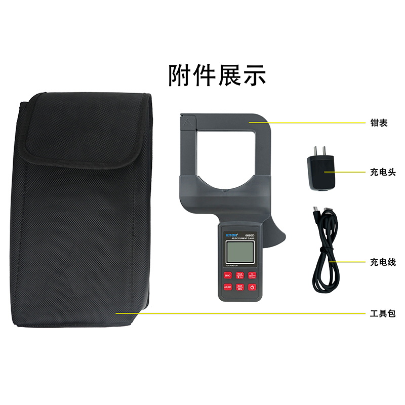 ETCR6680D大口徑直流/交流鉗形電流表鉗表具有直流/交流真有效值測量、最大值/最小值/平均值測量等功能。鉗表具有數據保持、藍牙通訊功能,使用大容量鋰電池type-c充電口,是一款新型的電工安全檢測必備工具。