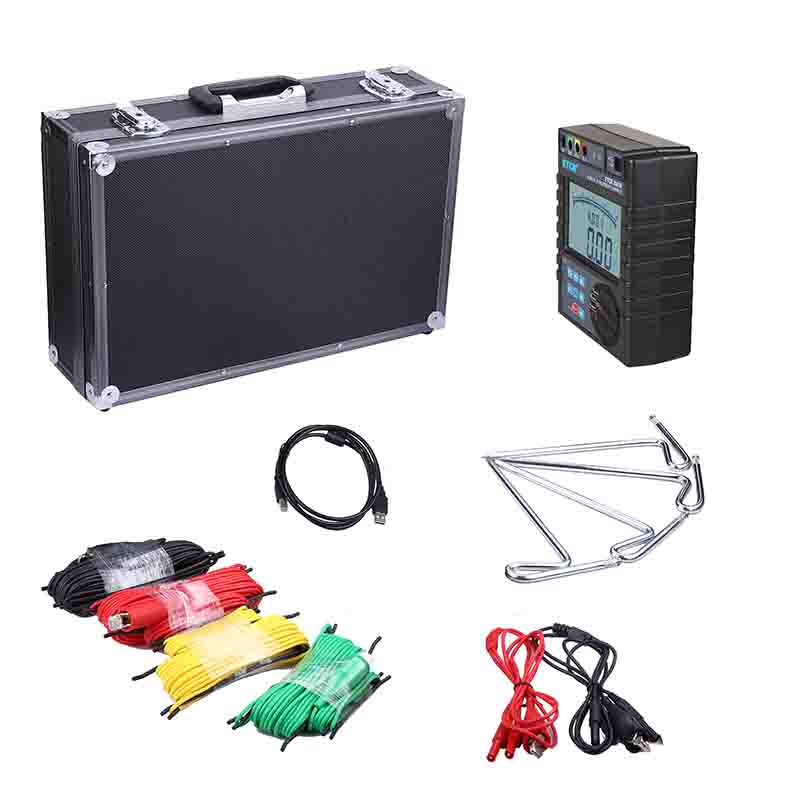 ETCR3000B接地電阻/土壤電阻率測試儀由主機、數據上傳軟件、測試線、輔助接地棒、通訊線等組成。主機超大LCD顯示,白屏背光,棒圖指示,一目了然。存儲功能,存儲300組數據,通過USB接口數據上傳軟件實現歷史查詢與在線實時監測功能,動態顯示,告警指示,具有歷史數據讀取、查閱、保存、報表、打印等功能。