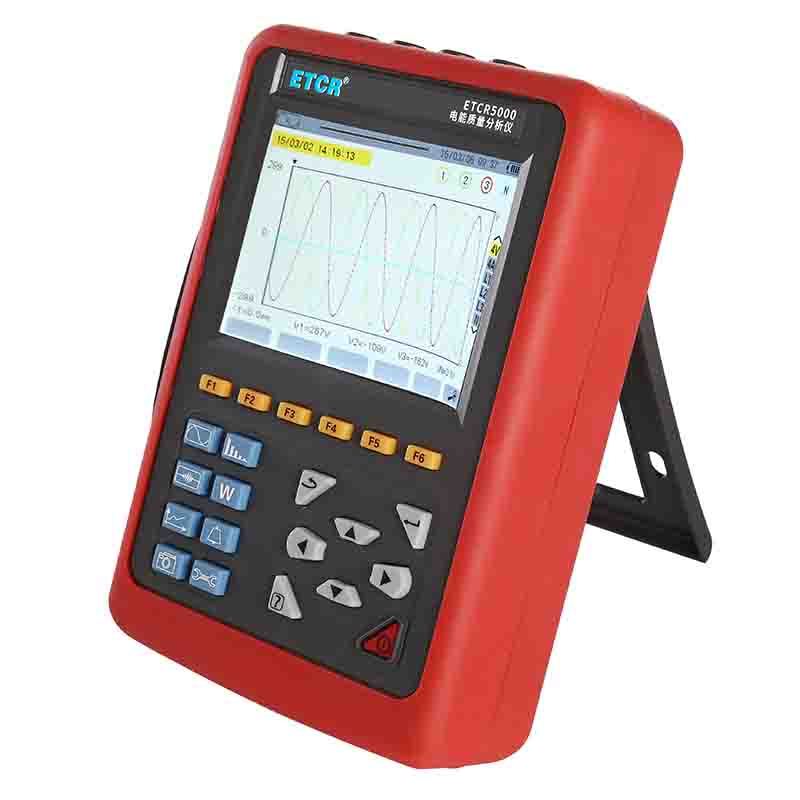 ETCR5000電能質量分析儀又稱電力質量分析儀、電力參數測試儀、諧波分析儀,是一款專為現場測試三相電能參數的多功能、智能化綜合型測試儀器。可同時測量4路電流(ABC三相及中性線電流),4路電壓(ABC三相電壓及中性線對地電壓)、電流電壓的峰值、一段時間內的最大最小值、三相不平衡度、短時電壓閃變、變壓器K因數、有功功率、無功功率、視在功率、功率因數、位移功率因數、有功電能、無功電能、視在電能、諧波比、總諧波失真度等;顯示電流電壓的實時波形、相量圖、諧波比柱形圖;動態捕捉電壓電流瞬時變化,監測啟動電流,監測各電力參數并生成告警列表,長時間記錄測試數據并生成趨勢曲線圖等功能。適用于電力、石化、冶金、鐵路、工礦企業、科研院校、計量部門等。