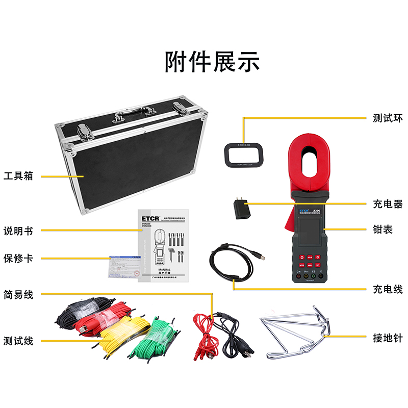 ETCR2300地樁式鉗形接地電阻表采用大口徑電流鉗設計,可應對各種場合的測試需求,可測量大尺寸接地引下線的接地電阻值,可測量單點和網狀接地等各種復雜接地結構的接地電阻值,測量并聯接地系統時無需斷開任何并聯接地極,極大地提高了測量的方便性,為接地性能測試提供了完美的解決方案。