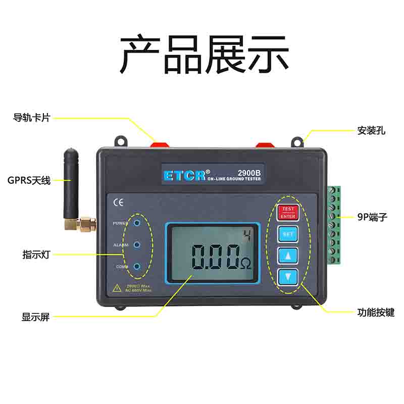 | ETCR2900B接地電阻在線測試儀(地樁式) | 0.01Ω~2000Ω | AC 0V~600V | RS485通訊,4G通訊 | 可設置報警閾值 |