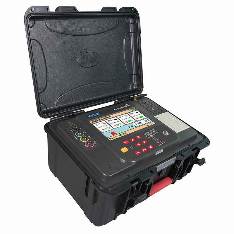 ETCR3250免解扣桿塔接地電阻測試儀由主機、4個電流鉗、測試線、輔助接地棒、通訊線、打印機等組成。主機采用7寸彩屏,電流鉗與主機采用無線通訊,儀表還具有藍牙通訊,下載APP后可在手機進行測試及查看測試結果。儀表配有內置式打印機,可在現場打印測試結果。儀表能存儲100組數據,通過USB接口及上位機軟件上傳測試結果,實現歷史數據讀取、查閱、保存、報表、打印等功能。儀表外殼采用防水保護箱,防撞、防摔、防水(防護等級IP65)堅固安全耐用,儀表還配有大容量可充電鋰電池組,特別適合在戶外工地使用。