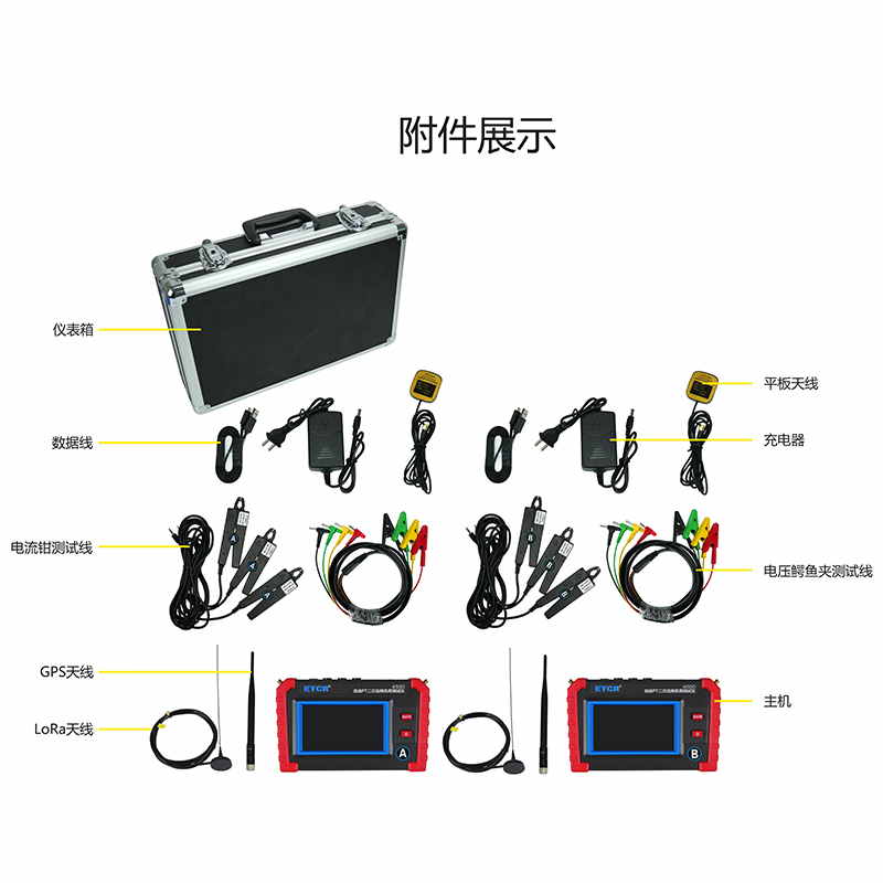 ETCR4500無線PT壓降負荷測試儀又稱PT核相儀、PT負荷測試儀、PT比差測試儀,用于現場在線測試電能計量裝置電壓互感器(以下簡稱 PT)的二次回路壓降,以及PT核相、PT負荷測試、CT負荷測試、三相伏安表、諧波分析等。儀表由2臺手持終端、6個電流鉗、2組電壓測試線等組成,2臺手持終端具有無線通訊及GPS通訊,可互設為主機或從機,實現同步測量變電站內不同位置之間電流、電壓、相位等參數。