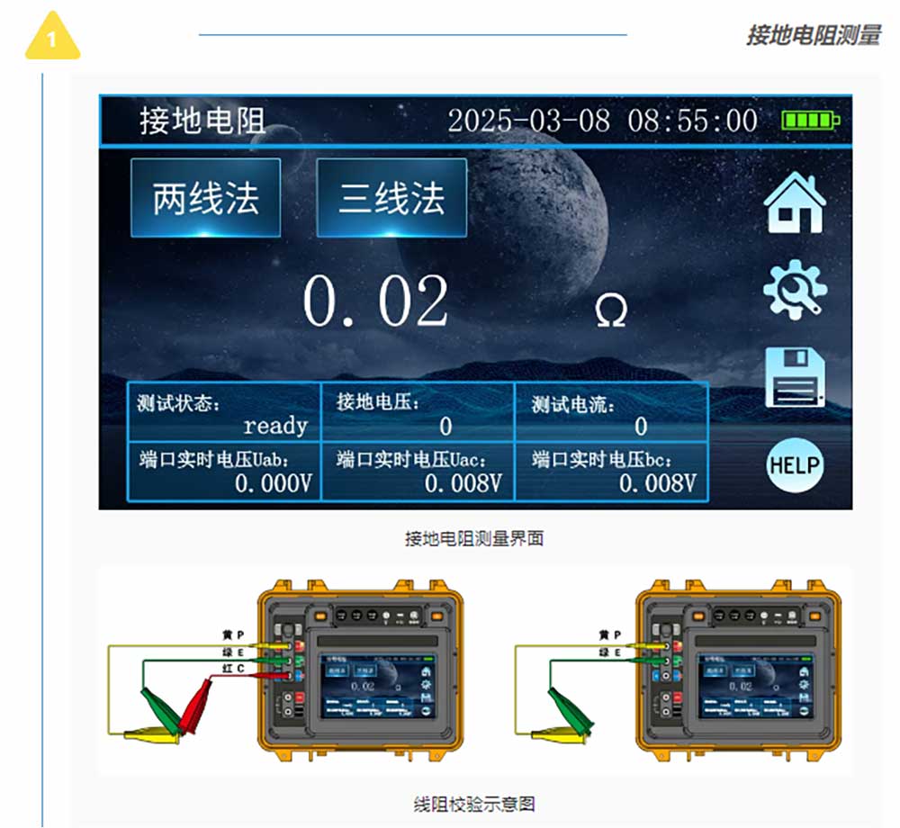接地/絕緣/直流電阻測(cè)試、RCD漏電保護(hù)檢測(cè)、電氣插座檢測(cè)、電流有效值測(cè)試、交流電壓測(cè)試、相序測(cè)試等電力參數(shù)測(cè)試。