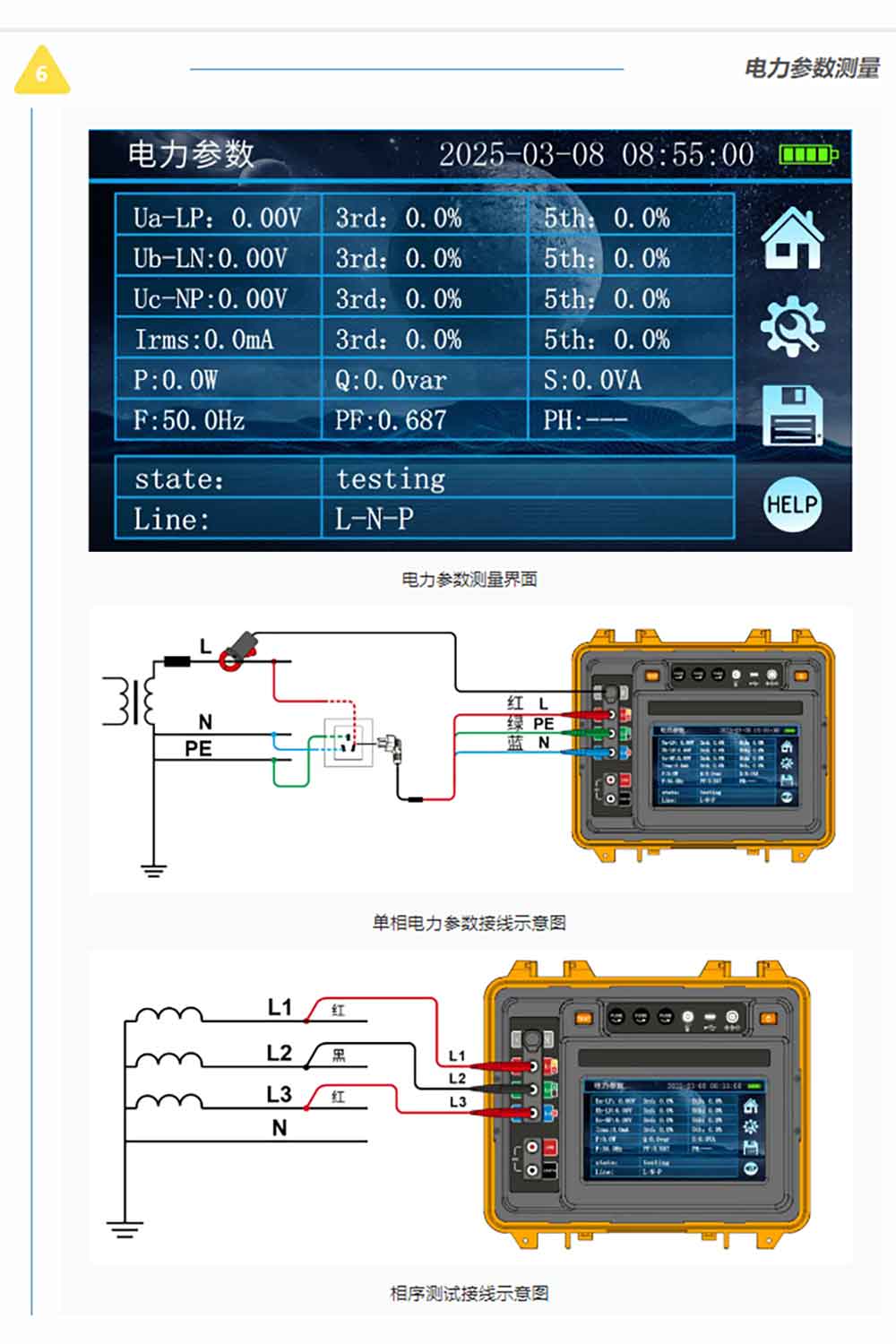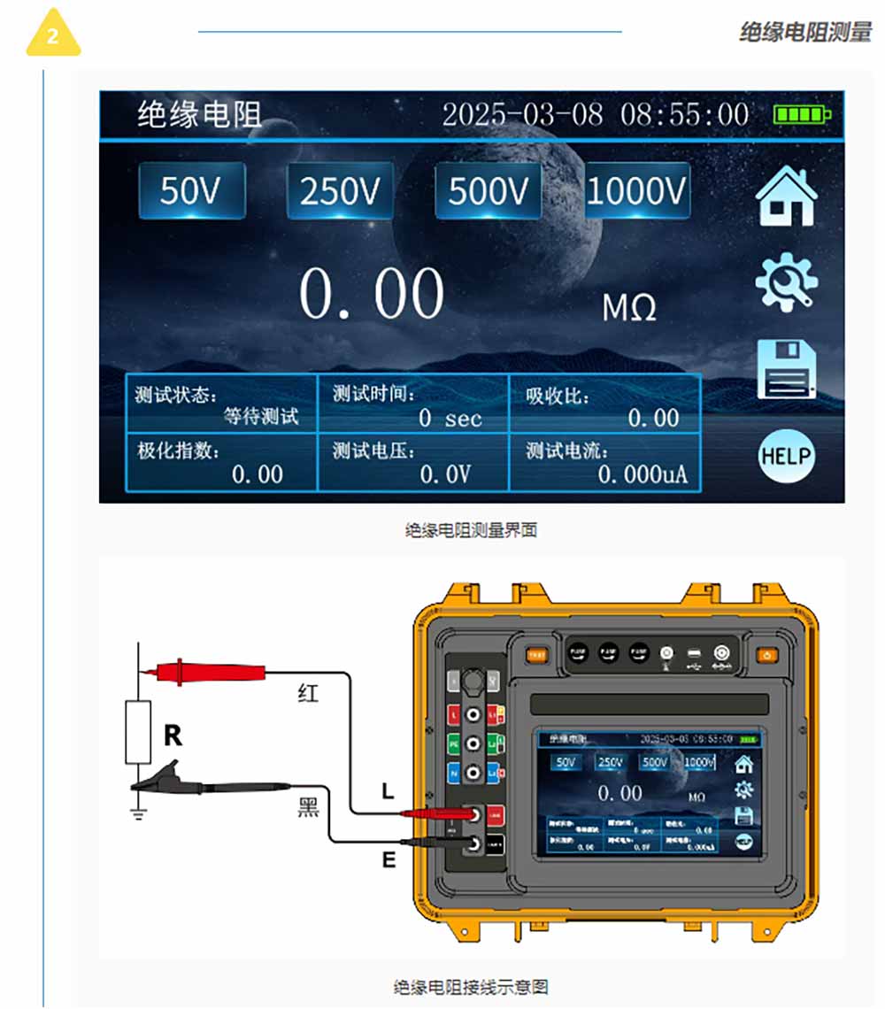 測(cè)試示意圖及接線(xiàn)標(biāo)識(shí)用不同顏色區(qū)分方便用戶(hù)在不同功能下的不同使用習(xí)慣。