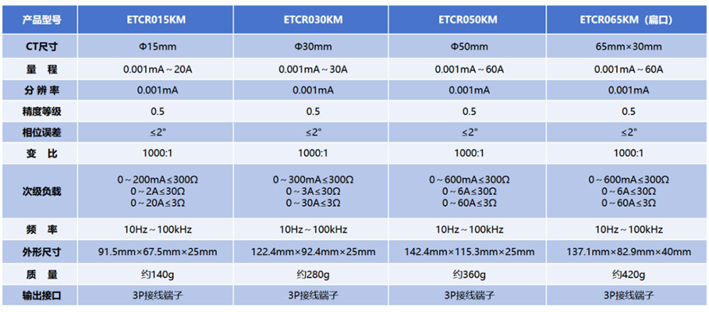 ETCR-KM系列開合式高精度漏電流互感器適用于高精度的交流漏電流、高次諧波電流、相位、電能、功率、功率因數等檢測。采用新CT技術,開合式結構設計,不必斷開被測線路,非接觸測量,安全、快速,可以連接相位檢測分析儀、工業控制裝置、數據記錄儀、示波器、諧波分析儀、電力質量分析儀、高精度數字多用表等。廣泛適用于電力、通信、氣象、鐵路、油田、建筑、計量、科研教學單位、工礦企業等領域。
